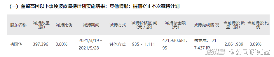 个人的减持计划确实停止了,但这并不影响毛国华通过石头时代继续减持,6月11日,石头时代减持16.73万股,减持人便是毛国华。若以减持价格上限每股1472.88元估算,毛国华套现2.46亿元。