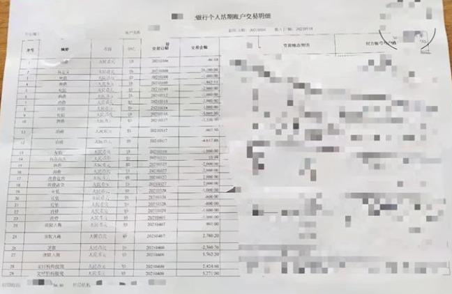 ▲部分转账情况银行流水单