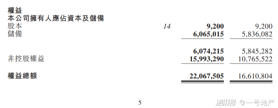 业绩报告显示,2021年,德信中国少数股东权益达到159.93亿元,相较2020年同比增加了52.3亿元,增幅达到49%,而同期控股股东权益仅从58.45亿元增加到60.74亿元,略微增加而已。
