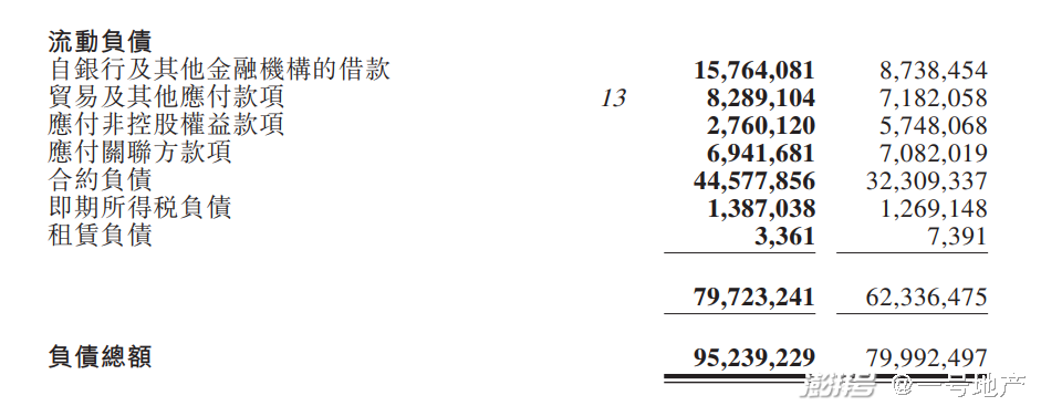 德信中国业绩报告中,除了年内到期的157亿元、82.9亿的贸易及其他应付款以外,还有应付非控股权益及关联方款项97亿元,总的债务规模相较德信中国的销售规模来说,偿付各类资金和债务的压力很大;