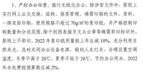 严控办公经费。如文件、资料,一律双面印制,严格控制印制数量和分送范围,复印纸用量压减10%。
