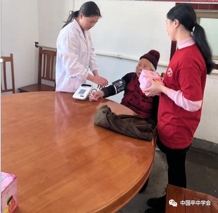首先,由神经内科主治医师鲁燕为古龙岗镇中心卫生院的医务人员及辖区乡村医生讲授“卒中的早期识别与急救处理”知识技能和双向转诊的流程。授课结束,红手环志愿者们来到古龙岗镇养老中心,针对老年人开展健康科普志愿活动,发放健康宣传小册子40余份及卒中宣传手袋,向他们详细讲解了高血压的防治管理,并免费进行了血压测量、血糖检查,针对不同患者给予相应的健康生活和合理用药指导。