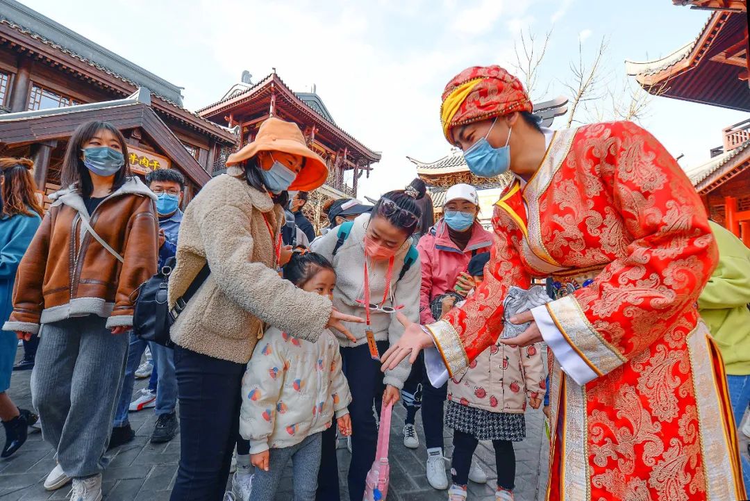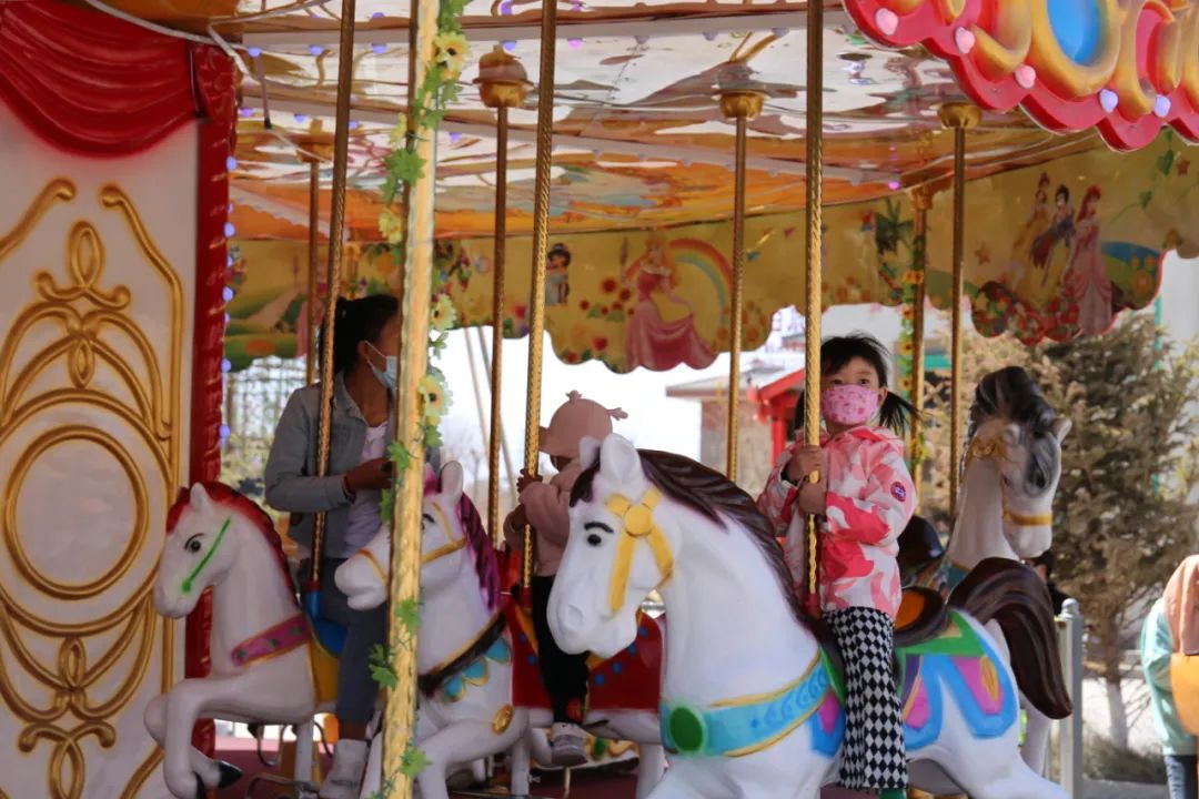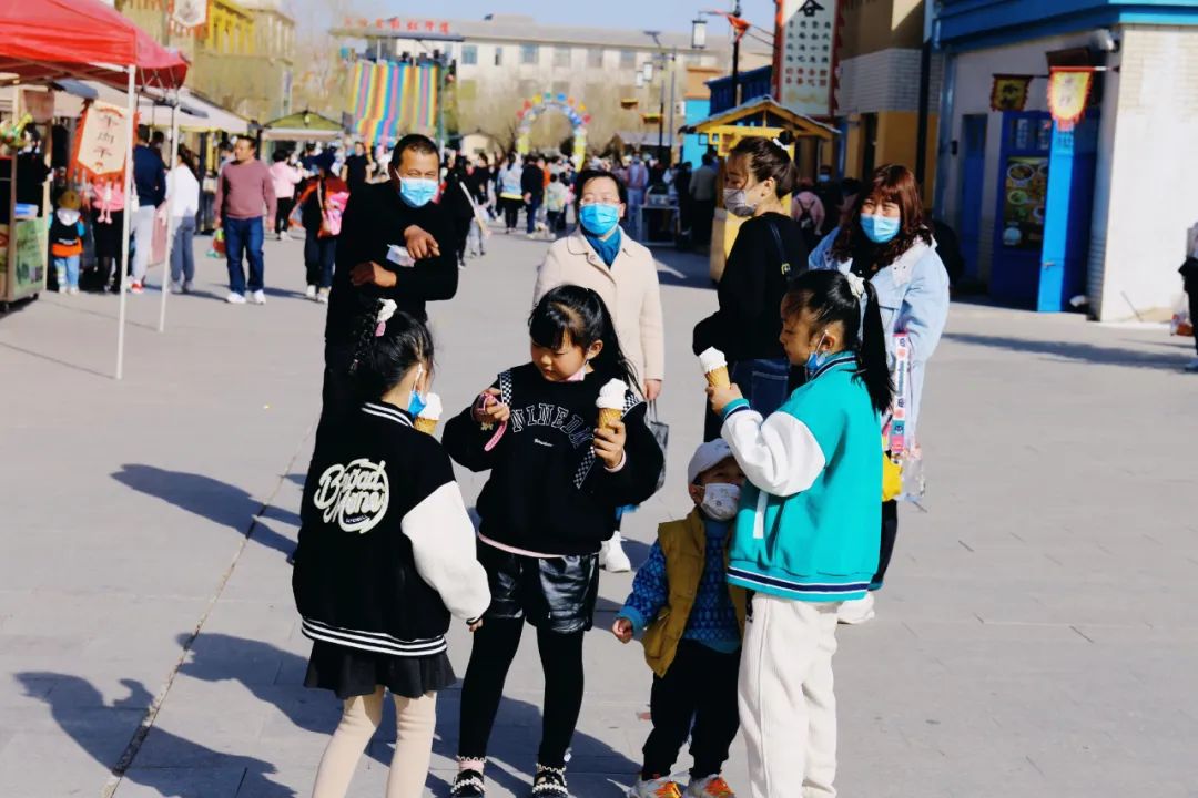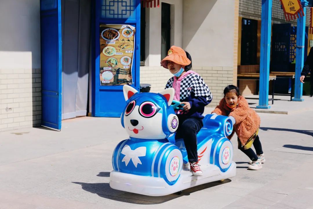 在嘉峪关·关城里景区,这里也成为孩子们承载欢乐的地方。景区推出彩虹滑道、真人CS、海盗船、碰碰车、步步惊心、射箭、打气球、水上遥控船、网红树、网红排排坐、扎气球、激光枪等各种适合孩子游玩的项目,各种各样的美食也勾起了孩子们对美食的欲望,同时清明节期间,景区还推出“集赞送欢乐”、汉服巡游等活动。