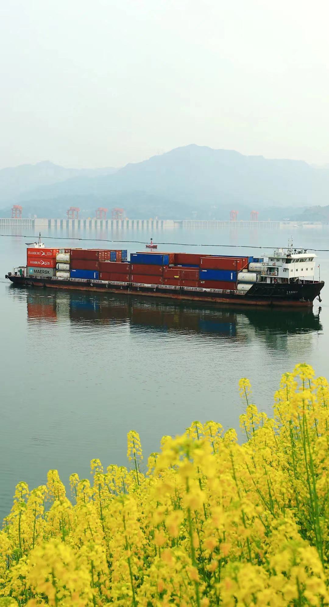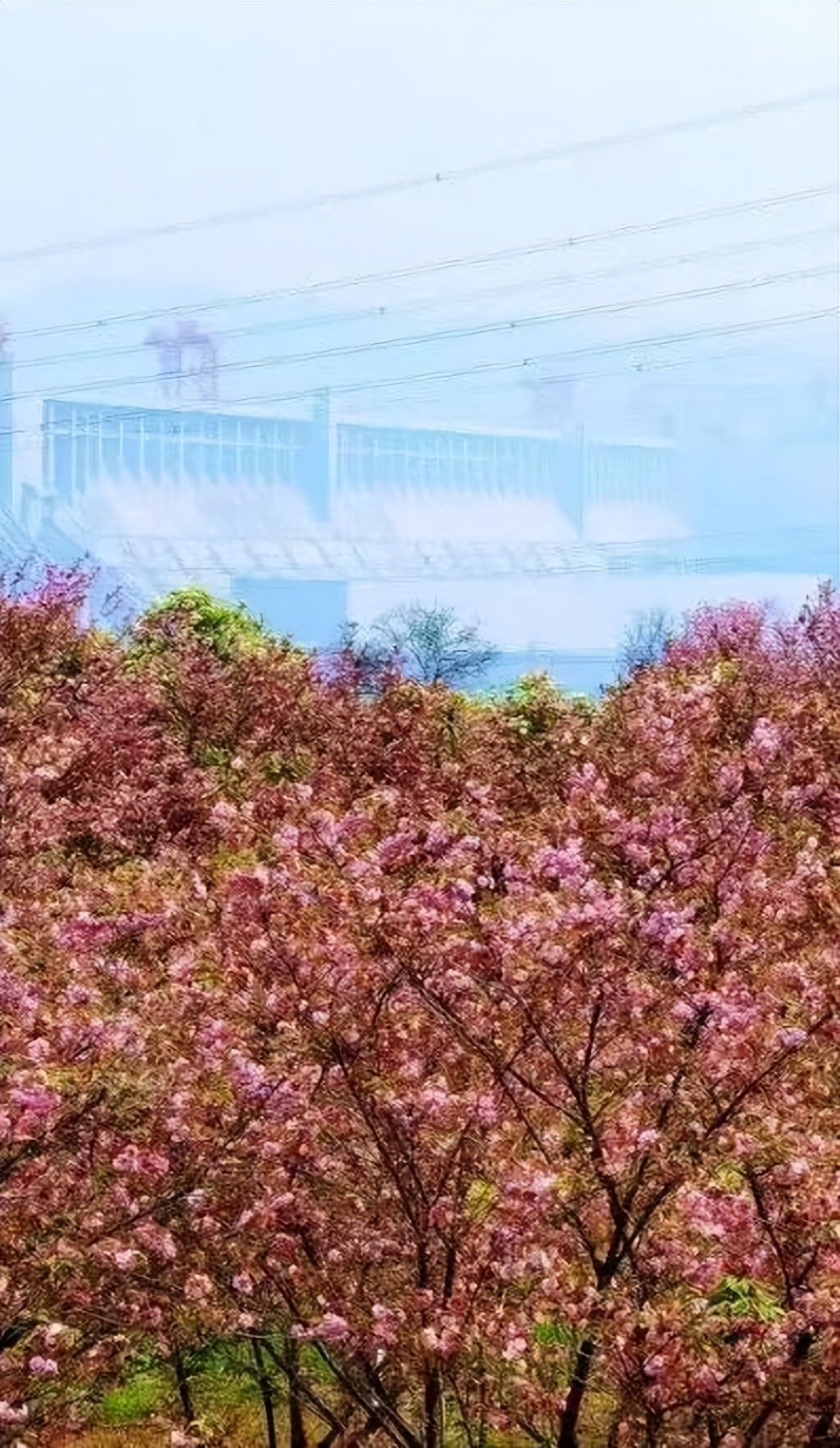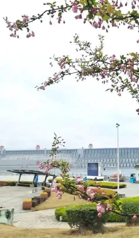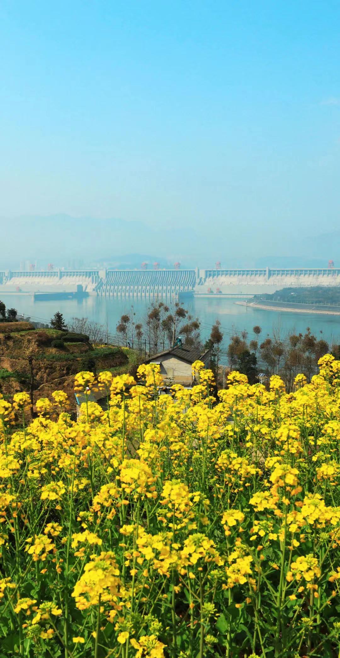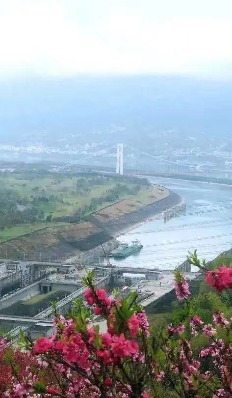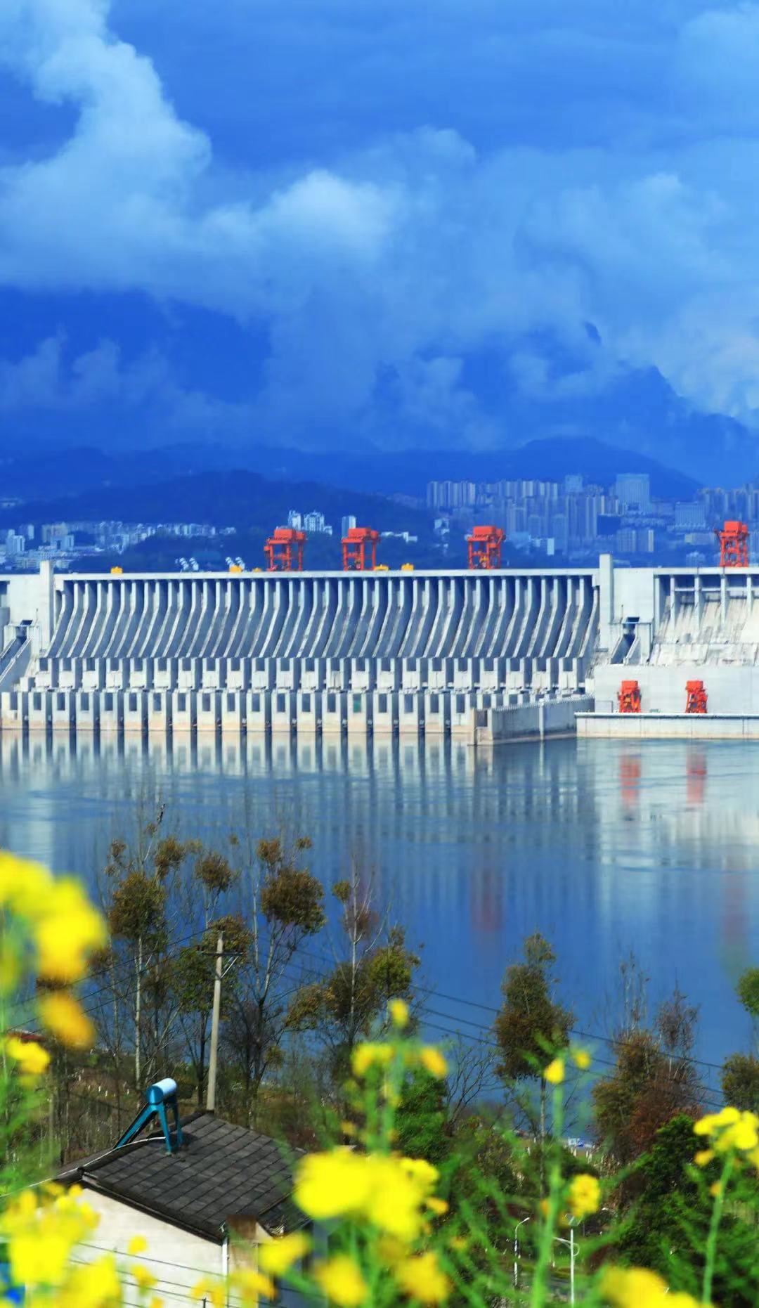 清明时节,三峡坝区沿岸的山花、油菜花竞相开放。碧绿的江水、葱茏的远山、飘香的花朵以及雄伟的三峡大坝,构成美丽的春光图。
