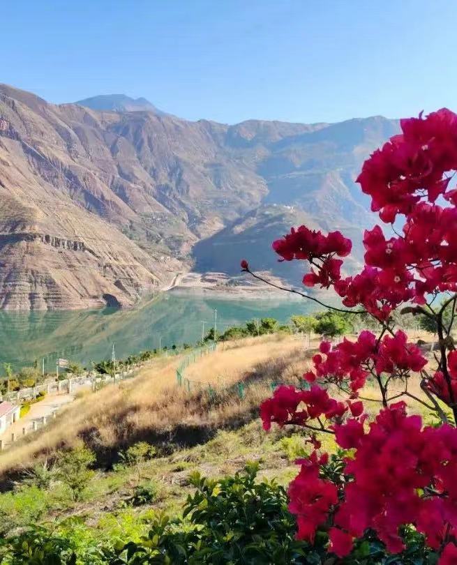 乌东德的春天,有蓝天白云,有烟雨朦胧,有红艳艳的三角梅,还有静夜中的蛙鸣。日光犹如一支无形的笔,将山梁轮廓清晰勾勒,群山变幻无穷,丰富而深沉。这片红褐色的土地,也从不缺少色彩。