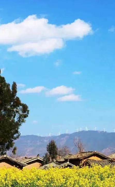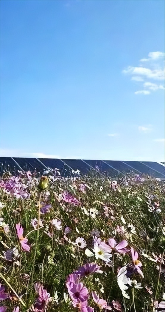 春日里,阳光明媚,油菜花点缀在一排排光伏组件中。春风拂过,花浪翻滚,香气四溢,好似一幅天然油画,美不胜收。