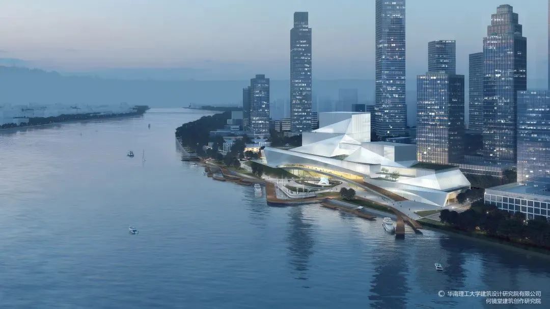 白鹅潭畔,临江矗立的广东省“三馆合一”项目(广东美术馆、广东非物质文化遗产展示中心、广东文学馆)正在如火如荼地建设中。