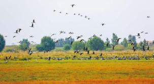 近年来,随着草原生态保护和治理力度加大,鄂托克前旗独特的地理环境逐渐赢得了候鸟的青睐,2010年以来,各类候鸟开始大规模出现,数量逐年增多,成为来草原“度假”的常客。