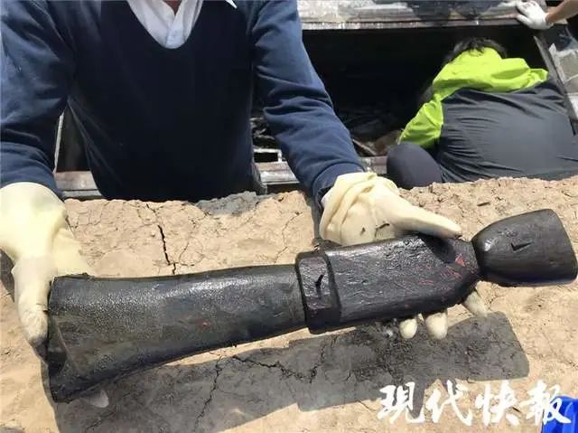 4 月 6 日上午,在亭湖区五星街道东闸新村一片拆迁后的空地上,考古工作者正在清理一座汉代墓葬。" 目前仅边厢与头厢中就发现有陶罐、木俑、漆耳杯、陶钫、缴、漆瑟、弩机、弓、瓢、陶郢爰等上百件(套)器物。" 盐城考古工作人员说。前几天旁边一个相对较小的汉墓取出了近 30 件随葬品。