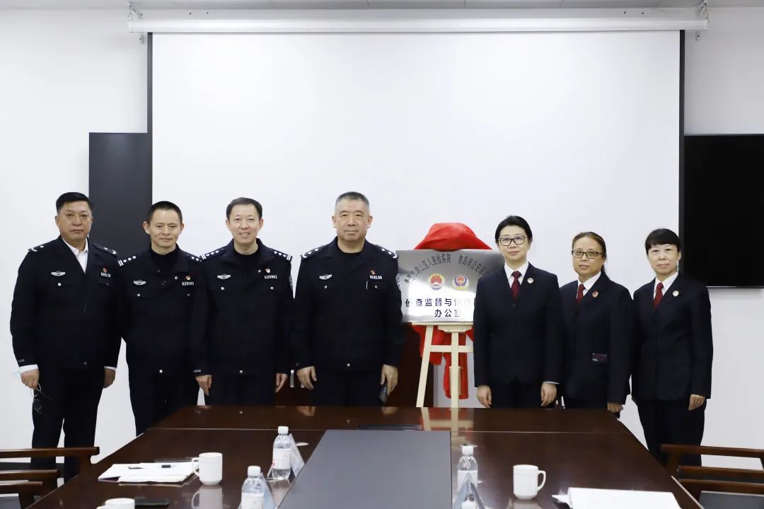 青岛市崂山区人民检察院检察长臧雪梅、青岛市公安局崂山分局局长黄继亮共同为侦查监督与协作配合办公室揭牌。