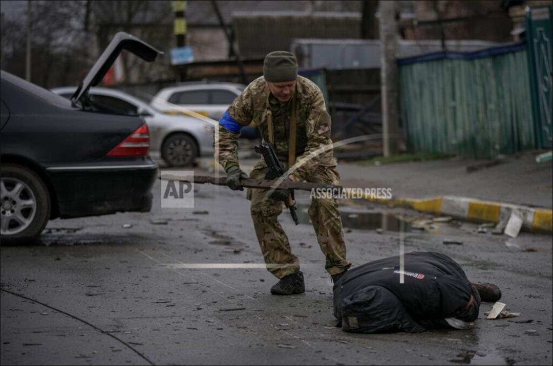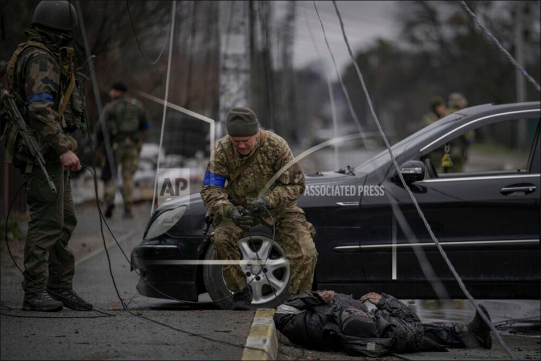 中文网络流传一段视频称,“乌克兰军队在4月2日冒雨加班加点,布置震惊世界的’布查大屠杀’现场。”