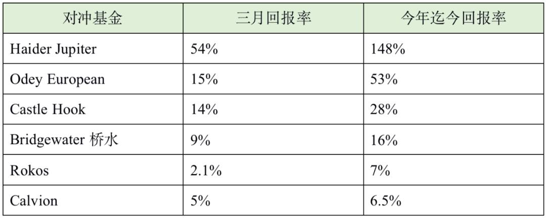 (部分宏观对冲基金三月和今年迄今回报率 来源:基金报记者整理自彭博社)