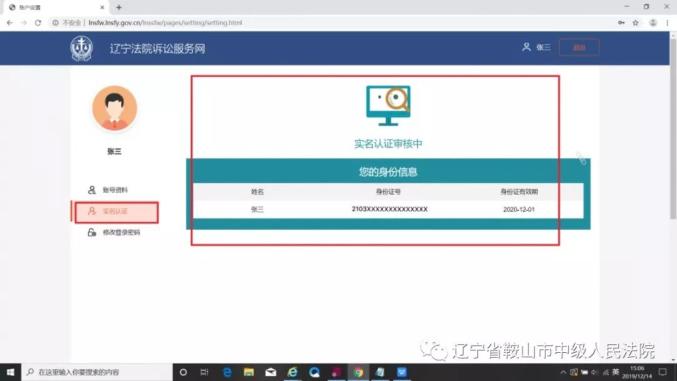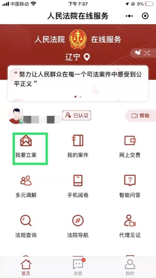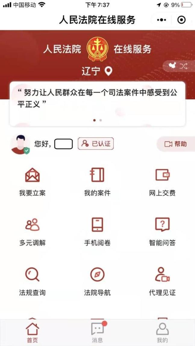 微信搜索“人民法院在线服务(辽宁)”小程序,点击进入。点击首页认证标签,按页面指引开始身份认证。