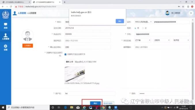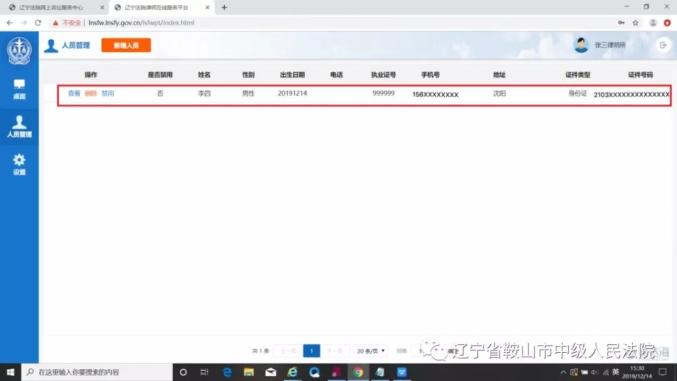 第四步:律师单位管理员注册完律师所后登录单位律师所账号,在人员管理中添加注册本单位的律师