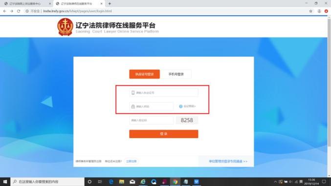 律师所管理员注册完本单位律师人员后,律师可在律师平台根据律师执业证号及密码登录