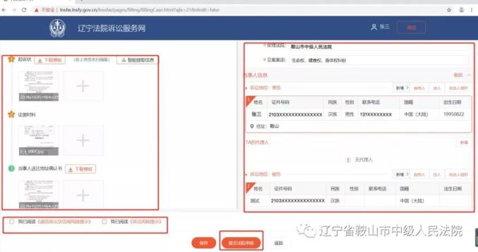 第三步:提交相关材料,填写相关案件信息,勾选我已阅读,点击提交法院审核
