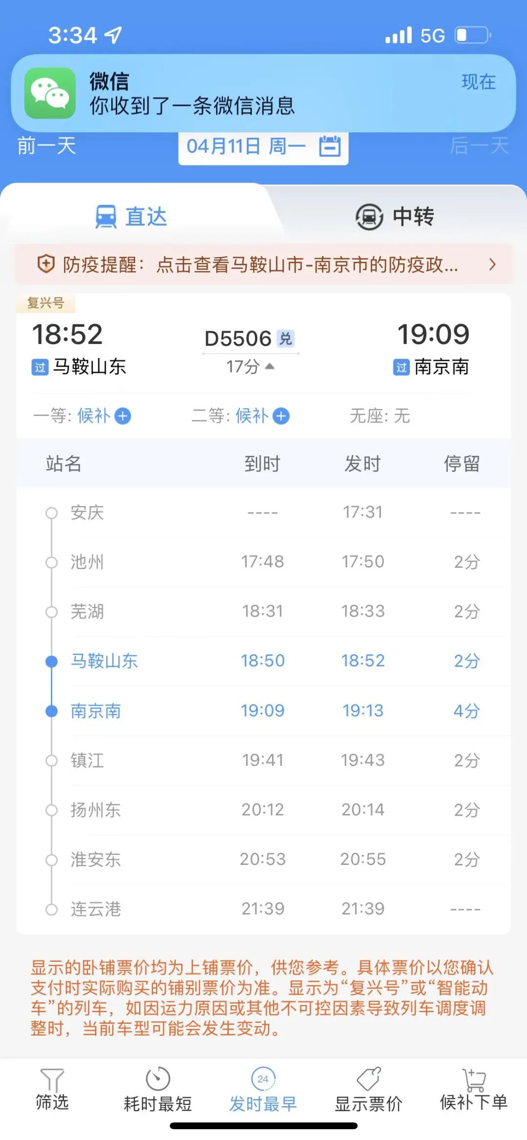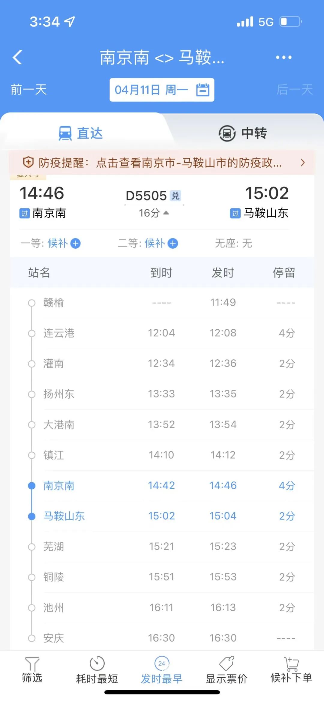 同时,为进一步落实疫情防控措施,配合各地政府疫情防控工作,铁路部门决定自4月7日起,铁路客票预售期临时调整为5天(含当天),恢复时间另行通知。马鞍山东站将统筹疫情防控和便捷出行需求,按“一日一图”灵活安排运力,精准满足旅客出行需求。4月8日,马鞍山东站将继续保持通往连云港的D5505、D5506车次运行。