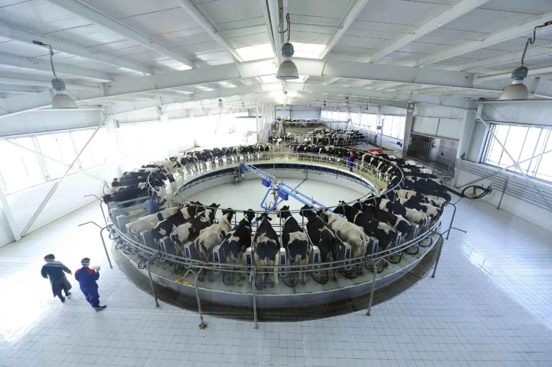 伊利某奶源基地中国际领先的转盘挤奶设备