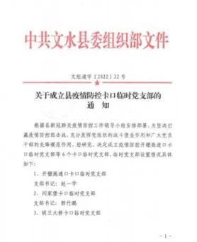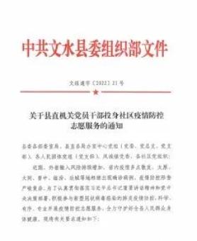 ▶文水县委组织部第一时间下发《关于县直机关党员干部投身社区疫情防控志愿服务的通知》、《关于成立县疫情防控卡口临时党支部的通知》