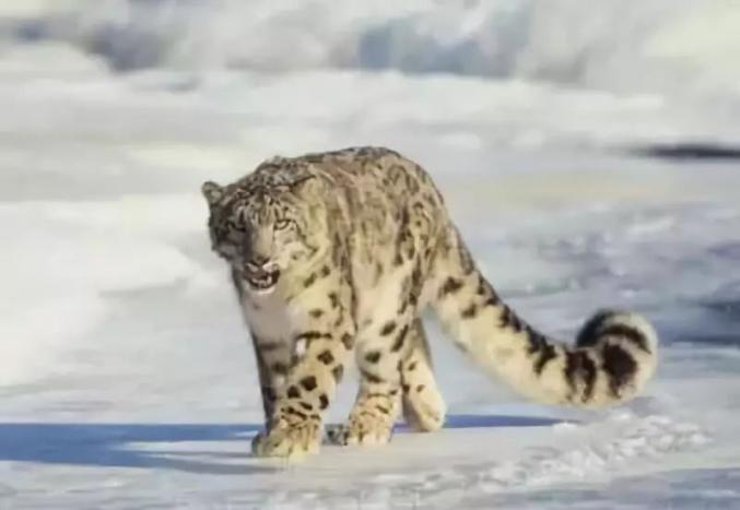 雪豹是亚洲高山高原地区最具代表性的物种,有“雪山之王”之称。由于雪豹十分罕见,它们的生活细节一直成谜,而且数量非常稀少,已成为极危物种,为我国一级保护动物。图为冬季一只雪豹在巡视自己的领地。
