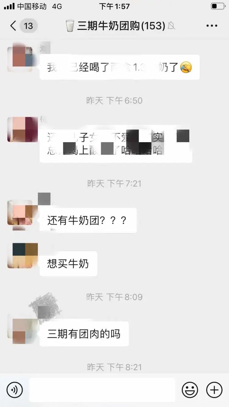 黄女士是宝山一小区的居民,平时就热心小区各种公益事务,是小区妈妈群、闲置物品群等多个群的群主,也是小区圣诞节、万圣节、跳蚤市场等各种活动的组织者,在小区有很高的人气。网购模式切换到团购后,她成了小区第一个团长——牛奶团的团长,“我觉得自己就像个热心的居委大妈,前几天看到小区居民在群里发了某品牌牛奶团购的海报,后面有几个邻居跟着都说需要牛奶,我马上就和该品牌区域负责人联系,然后开团,前后不到10分钟,我感觉我是义不容辞要站出来。”黄女士爽朗地笑着说。
