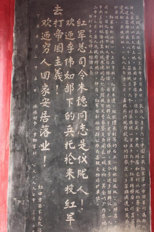 1933年,中国工农红军第四方面军在蓬安县平头乡建立第十五区苏维埃机关所在地,儿童队在平头乡政府大门口的黄桷树下立有长3尺、宽2尺的石碑,石碑上刻有“红军总司令朱德同志是仪陇人”(现存放于仪陇朱德纪念馆)。
