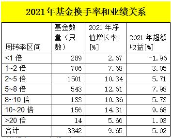 天相投顾数据显示,2021年纳入统计的封闭式、股票型开放式和混合型开放式(不含指数型封闭式、指数型开放式、混合型保本基金)的整体平均换手率为2.41倍,这也意味着,所有主动偏股开放式基金去年平均转手买卖的频率为2.41次/年。