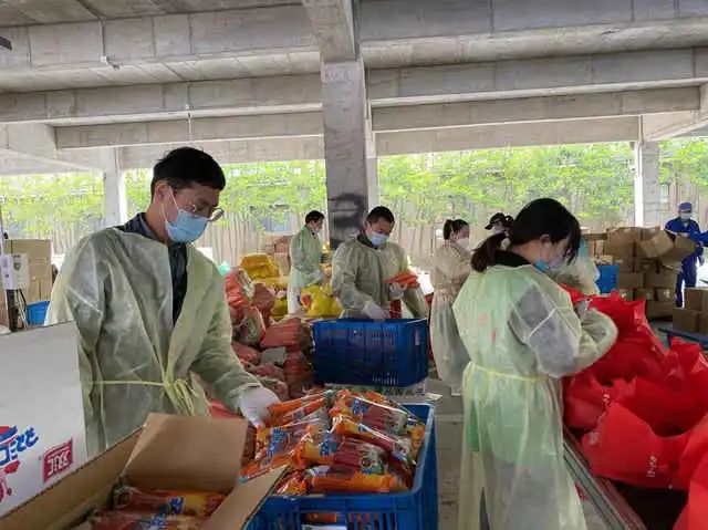 最多的时候有106人同时参与分拣和搬运工作,每小时可分拣2000袋,五天下来,共分拣搬运大米22吨、各类蔬菜110吨、副食品32吨,被送往江川路街道48个居委,93个小区,有力保障了特殊时期群众生活。
