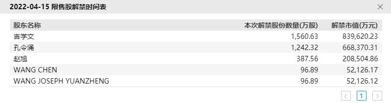 其中,德方纳米、鄂尔多斯、国联证券将解禁金额位居前三,分别为182亿、99亿、57亿。德方纳米解禁尤其值得关注,该股4月15日将解禁3384.29万股,都是首发原股东限售股份。