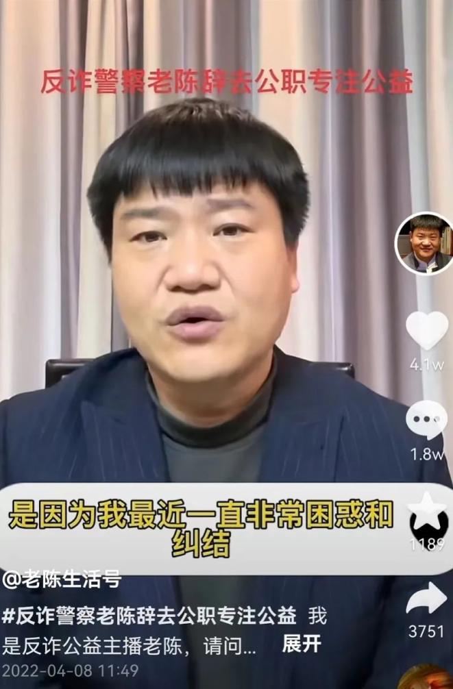 “老陈”原是一名打击电信诈骗的民警,因与主播PK连麦宣传反诈,意外走红网络,也招来质疑。在“老陈”辞职前不久,他用其个人短视频账号进行直播,被网友打赏约百万元,有人因此怀疑其有商业目的。对此,“老陈”宣布当日直播收入已全部捐出。