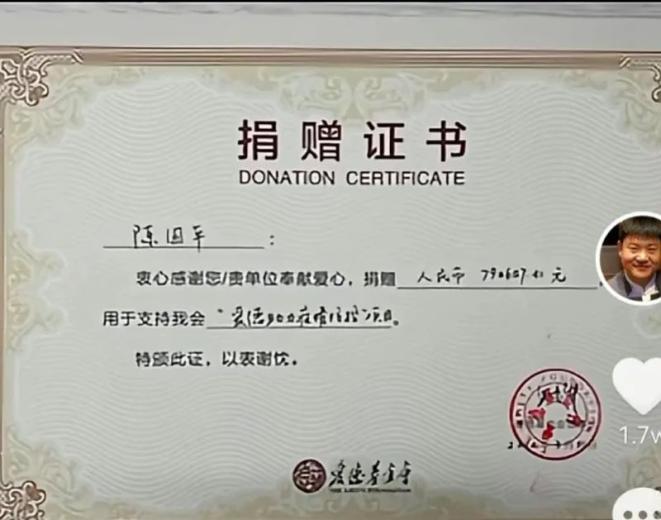 随后,陈国平宣布当日直播收入“会做公益捐赠”。3月31日,陈国平再次发布视频,称“已走完全部捐款流程”,并晒出了捐赠证明和完税证明。他表示,27日直播全部收入合计119万余元,包含平台收入与其个人收入。税后收入合计79万余元,已捐赠给疫情防控公益项目。