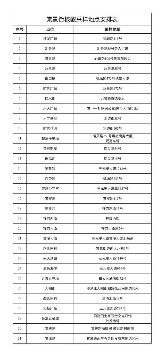 一、请按照所在镇(街道)社区(村居)通知,分时段参加核酸检测并做好个人防护。全区人员按照“应检尽检,不漏一人”的要求,免费参加核酸检测。具体核酸采样点设置详见各镇(街道)区域核酸检测通告。