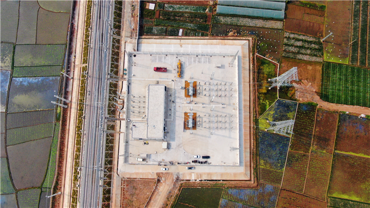 据悉,弥勒高铁共有楷甸、万家庄、雨过铺三座牵引变电所。三座牵引变电所均是通过牵引变压器将外部电网提供的220千伏交流高压电变换为接触网使用27.5千伏交流高压电,然后输送到铁路线上方架设的接触网,给高铁动车组供电,完成动车组牵引的动能供给,保证动车组的正常运行。