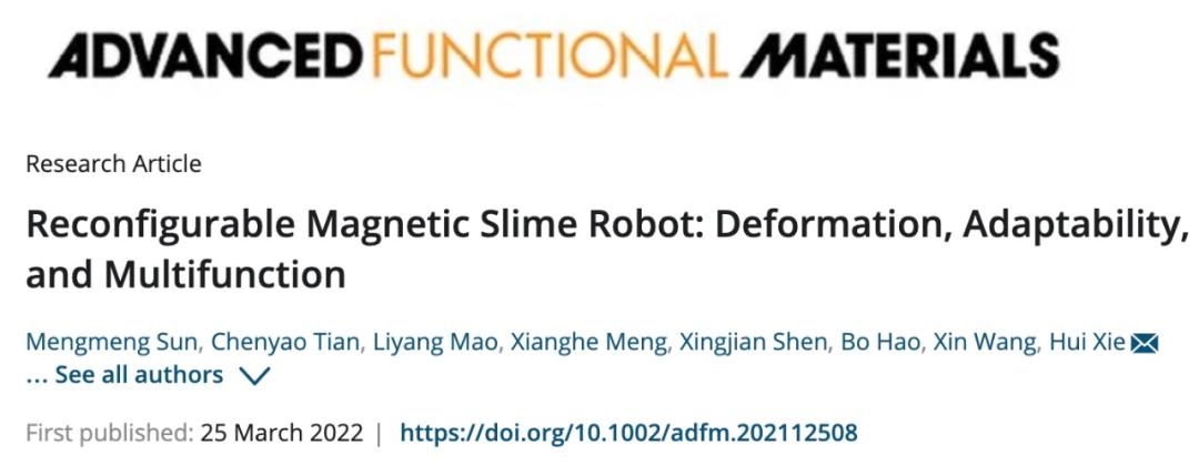 这种「磁性粘液机器人」和粘液怪 slime 同名,是由来自哈尔滨工业大学和香港中文大学的研究者共同研发的,研究发表在同行评审期刊《Advanced Functional Materials》上。