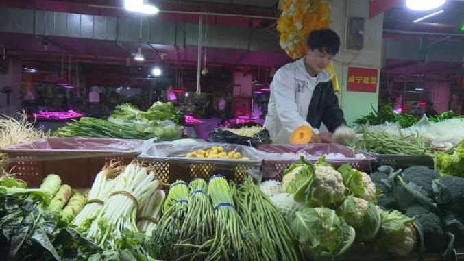 李章行正忙着给顾客称菜(李玉琴 摄)