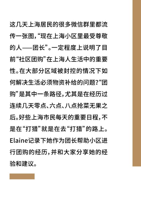 我当机立断和Ruby商量拉个专门买菜的群,一家一个代表,这样买菜和其他沟通可以稍微分隔一下,免得大家找不到北。我们找了Vanessa,三人小组搞了一个群二维码,然后Ruby去大群引流,我在小群写规则。其实已经不需要规则了,邻居们都自告奋勇地接龙、组团。我开完会回来,根本找不到组织和龙头了。我也就不再关心,够吃就好,回来工作吧。