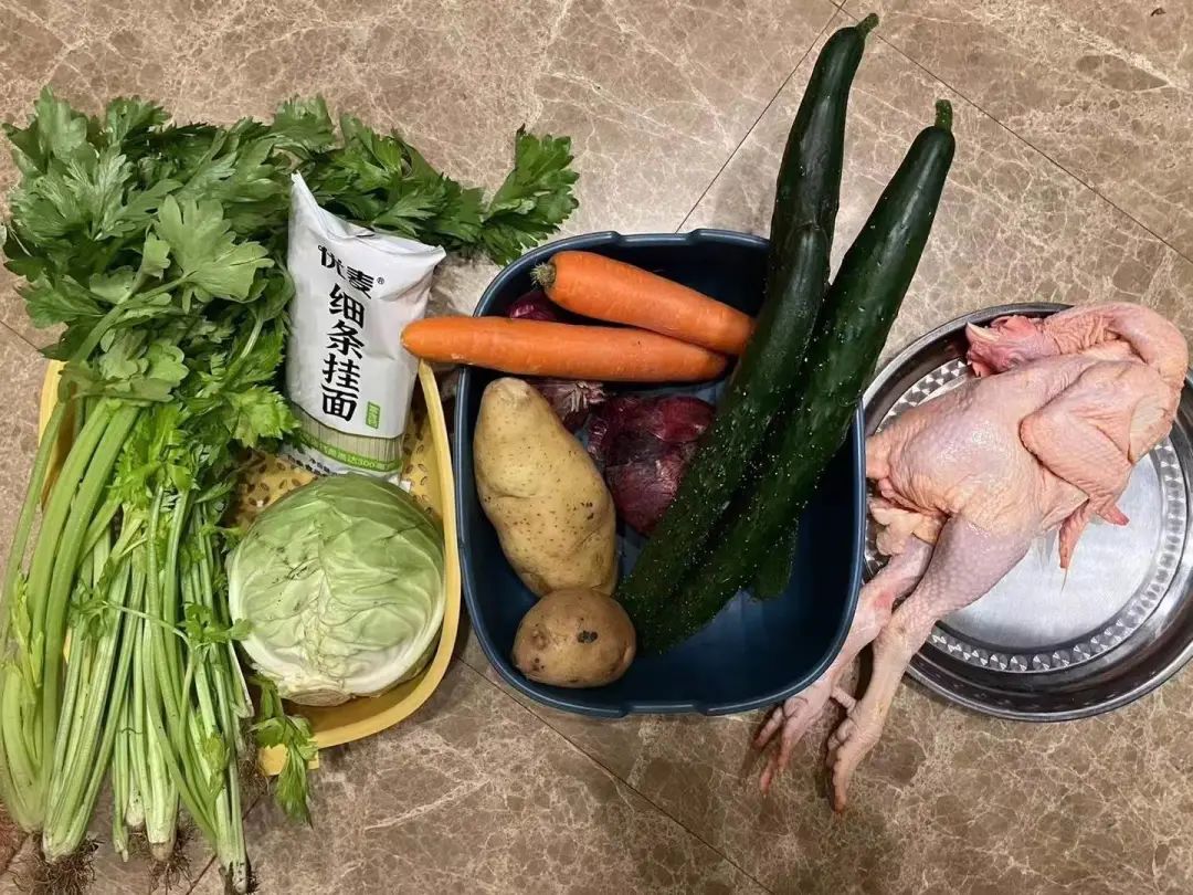 到了4月6日晚上10点半,阳光冲破了黑夜,终于普照到了我们,大礼包里有一只鸡,一箱菜:芹菜,洋葱,黄瓜,胡萝卜,土豆,卷心菜。基本上可以吃上很多天了。