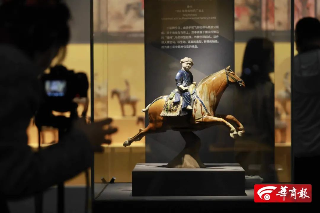 李晶洋介绍,三彩胡人腾空马也是西安博物院的一件镇馆之宝,1966年出土于西安市制药厂唐墓。