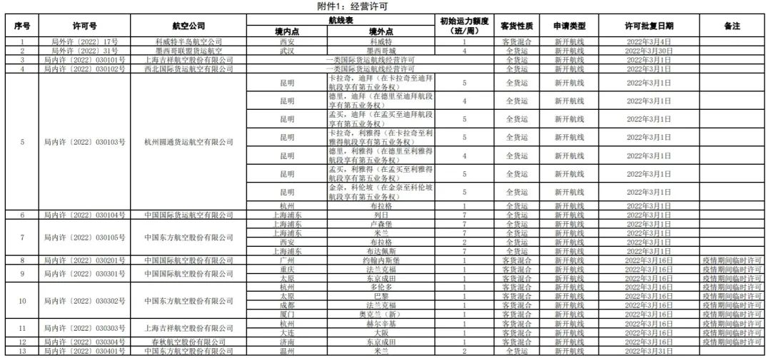 民航局发布3月国际航线审批结果,其中科威特半岛航空执飞西安=科威特为客货混合航班,国航重庆=法兰克福、东航厦门=奥克兰、吉祥航空杭州=赫尔辛基、春秋航空济南=东京成田等航班均为疫情期间临时许可的客货混合航班。