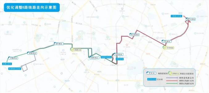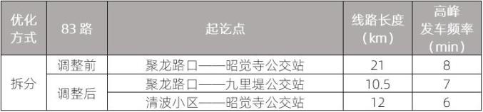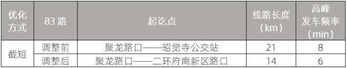 为解决公交线路运行里程过长导致的车辆间隔不均匀、线路运营效率不高、影响行车安全、浪费公共资源等问题,实现“通勤时段轨道站点与公交站点换乘时间不超过5分钟,公交平均候车时间降低至5分钟以内,常规公交准点率提高10%,通勤时段常规公交平均车速提高至18公里/小时”的城市通勤效率提升工程目标,按照“提升公交周转效率、科学配置运力资源”的原则,拟对8路、83路、92路等单程超过20公里的公交线路进行优化调整。