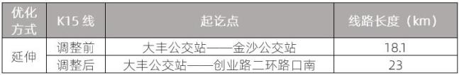 (一)加强北星大道与高新南区的交通联系,加强二环快速公交体系与创业路的交通衔接,提升车辆利用效率,解决红牌楼东与紫荆北路口站点间距较长问题,拟优化调整K15路。