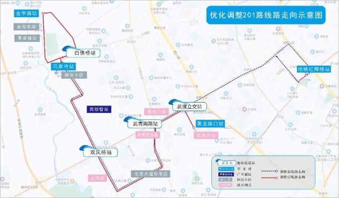 目前,在顺城大街至昭觉寺南路一线上重复开行的线路较多,1路、64路、99路三条线路连续重复超过6公里,存在不同线路之间串车、进站时间排行时间较长等问题,造成了沿途线路运行效率不高、运力浪费。拟试点从线网优化入手,采取“裁线加频”的方式,提升沿线的公交运营效率。