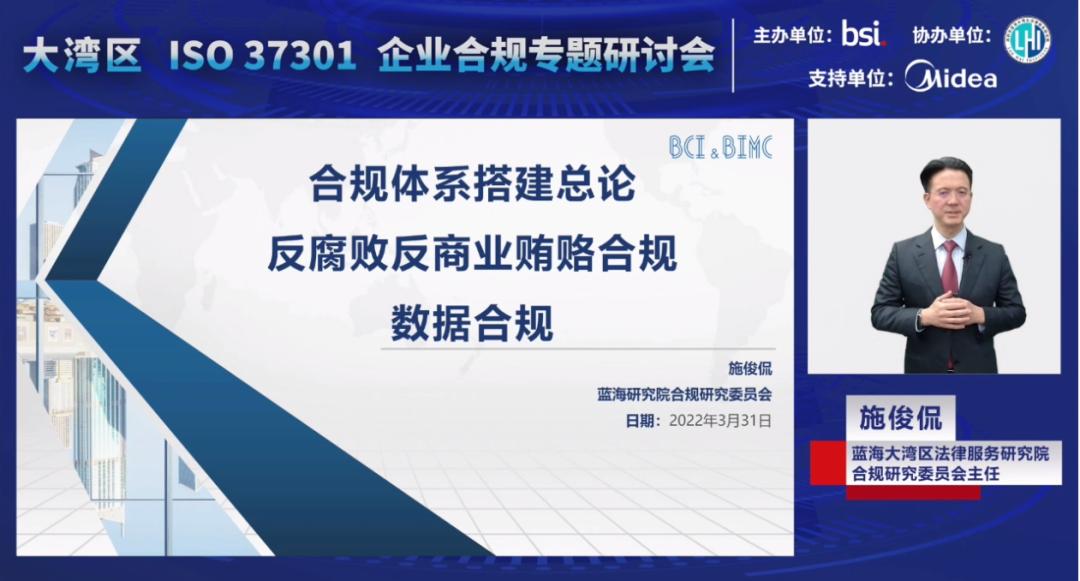 2022年3月31日,由BSI主办,蓝海大湾区法律服务研究院协办和美的集团支持联合举办的大湾区ISO 37301:2021企业合规专题上线研讨会成功召开。
