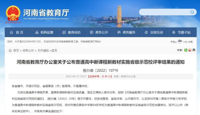 《关于公布普通高中新课程新教材实施省级示范校评审结果的通知》