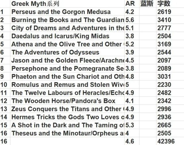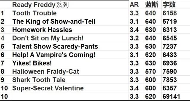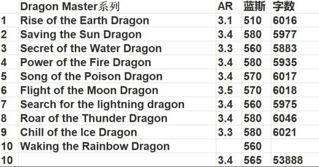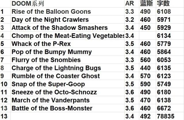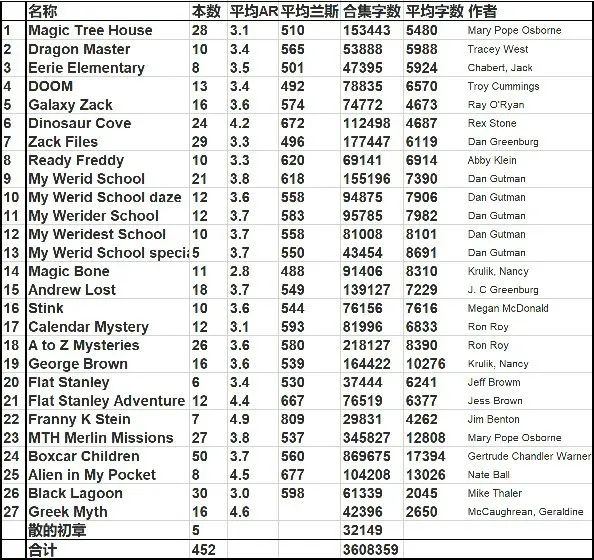 这是整理后的初章书目,配合了平均AR和蓝思值,供大家参考��