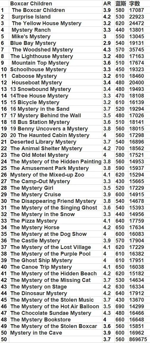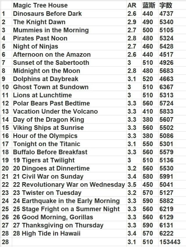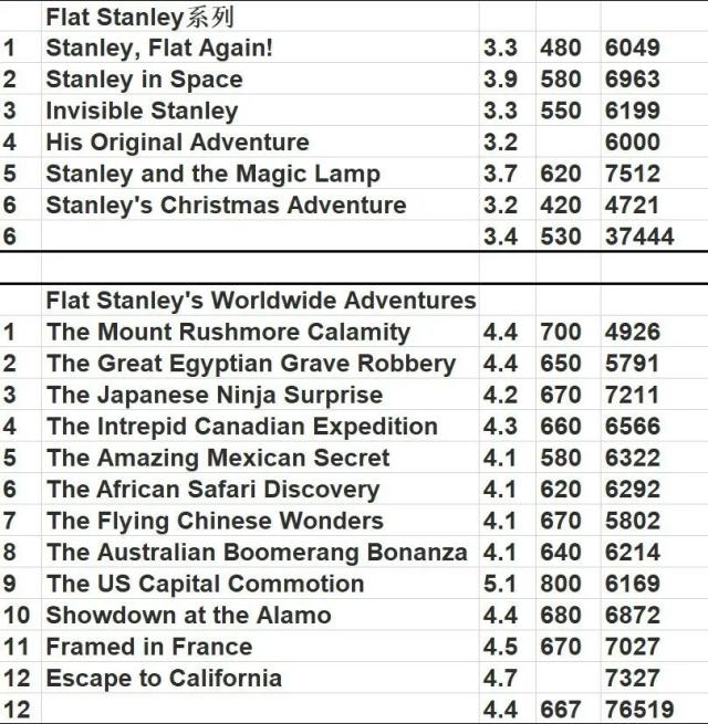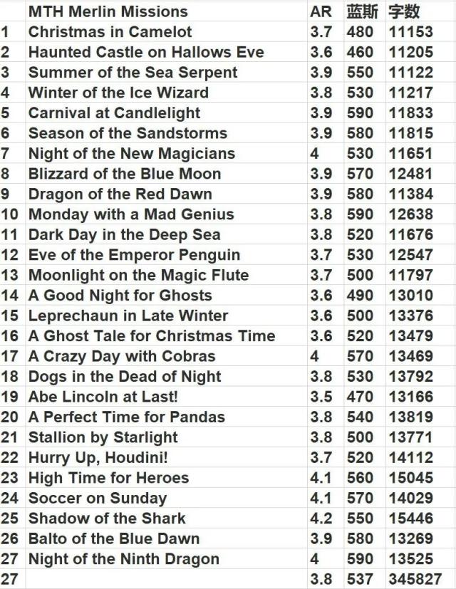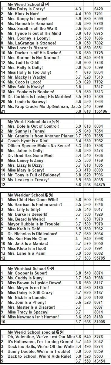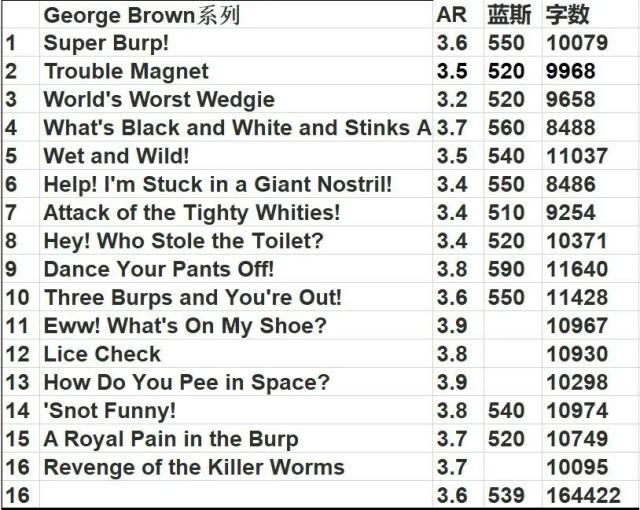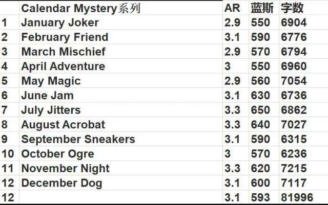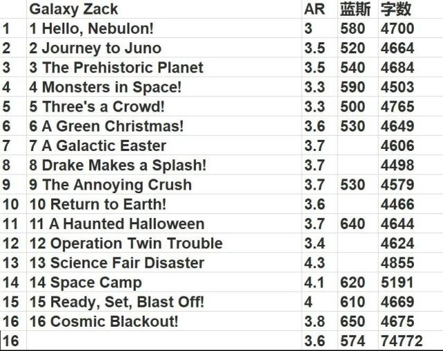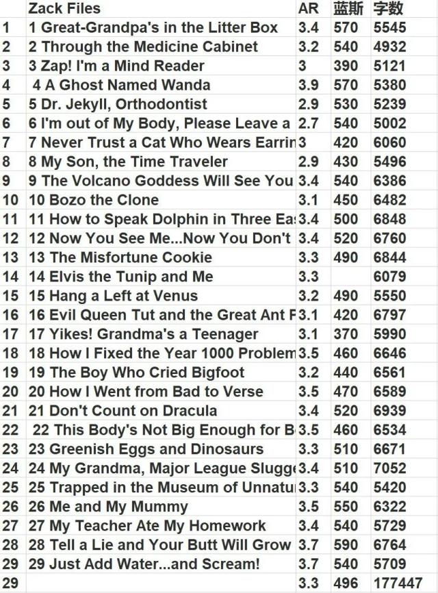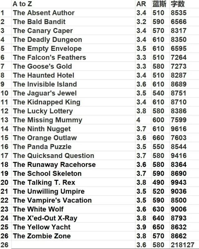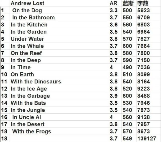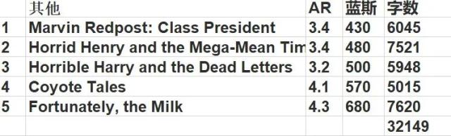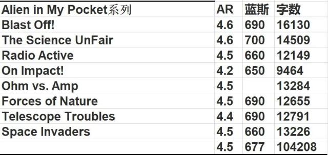 每册的AR和蓝思值,供大家参考��