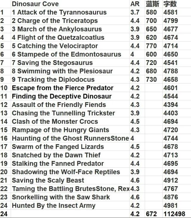 平均AR: 4.2/蓝思: 672L