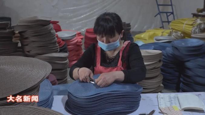 西付集乡的草编有着悠久的历史,是国家级非物质文化遗产—大名草编的主要传承基地。在西付集乡博荣工艺品有限公司的生产车间,工人们正在忙碌着赶制草帽和餐垫订单。返乡创业之前,朱敬起之前在浙江台州经营草编厂,在当地返乡创业计划的吸引下,他选择回到家乡进行创业,得益于当地的人力资源优势,他的草编企业规模不断扩大。