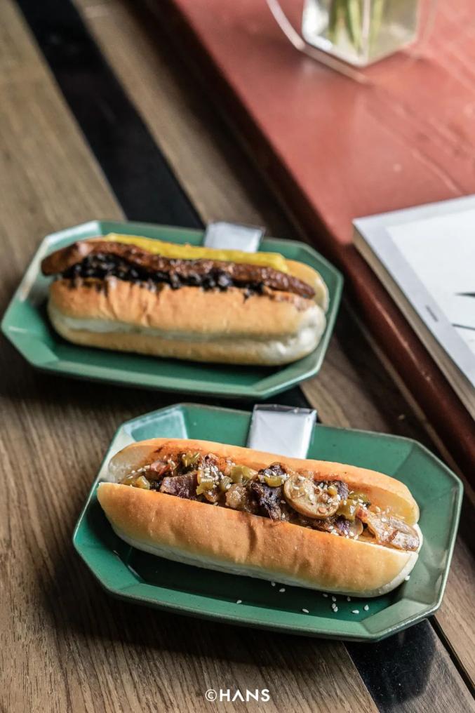 店里最受欢迎的是中式三明治,两种口味,一大份梅菜扣肉或湘西腊肉,夹在长条的脆面包里。