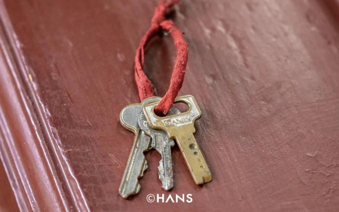 小鲍也没见过这串钥匙,他来以后,三楼卧室一直靠一根苹果数据线带着门,厨房上也拴着一把打不开的锁。这下好了。